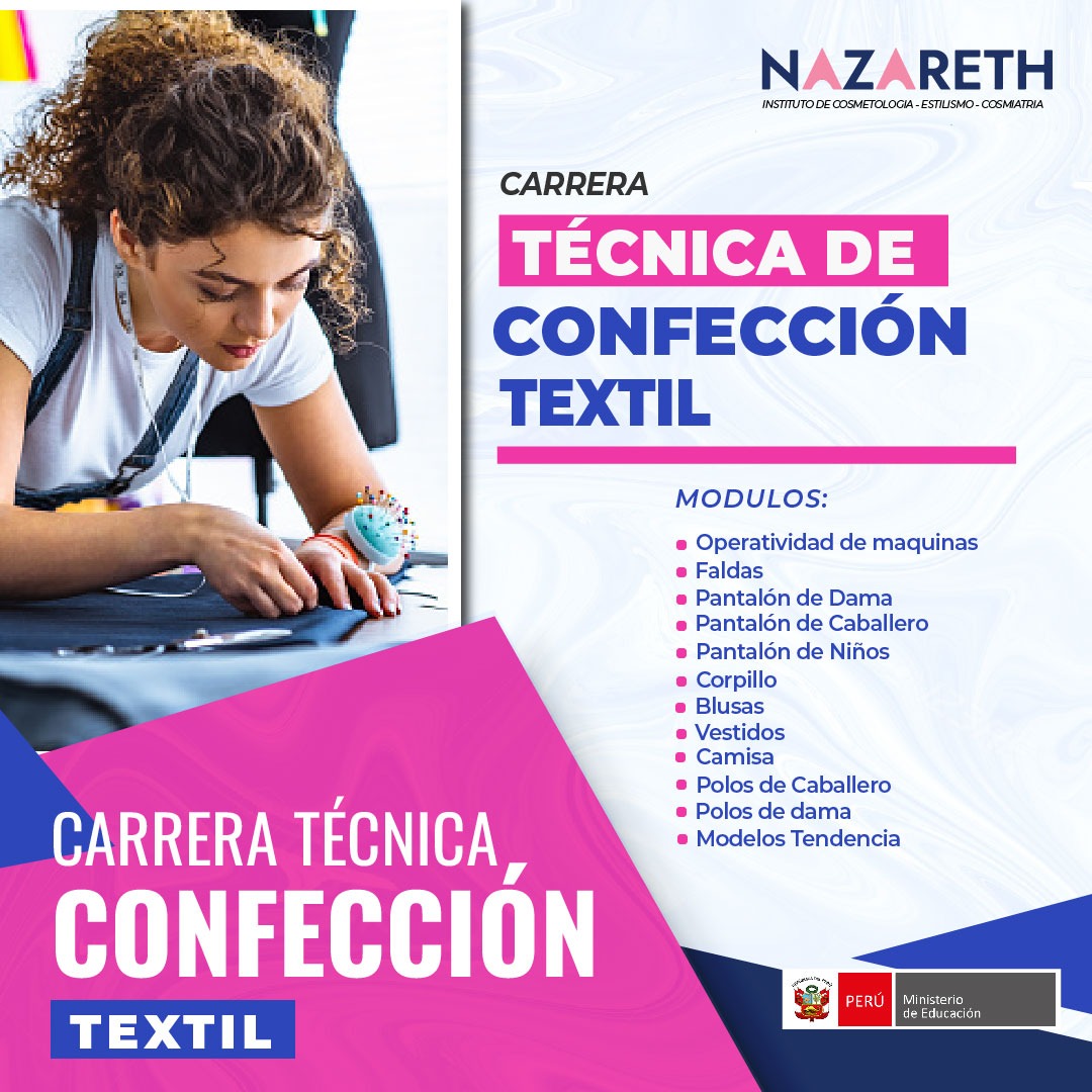 La carrera de Confección Textil forma profesionales capaces de diseñar, producir y transformar prendas con creatividad, precisión y compromiso con la calidad. Aquí aprenderás técnicas modernas de costura, patronaje, manejo de maquinaria industrial y tendencias de moda, preparándote para enfrentar los desafíos del sector textil nacional e internacional.